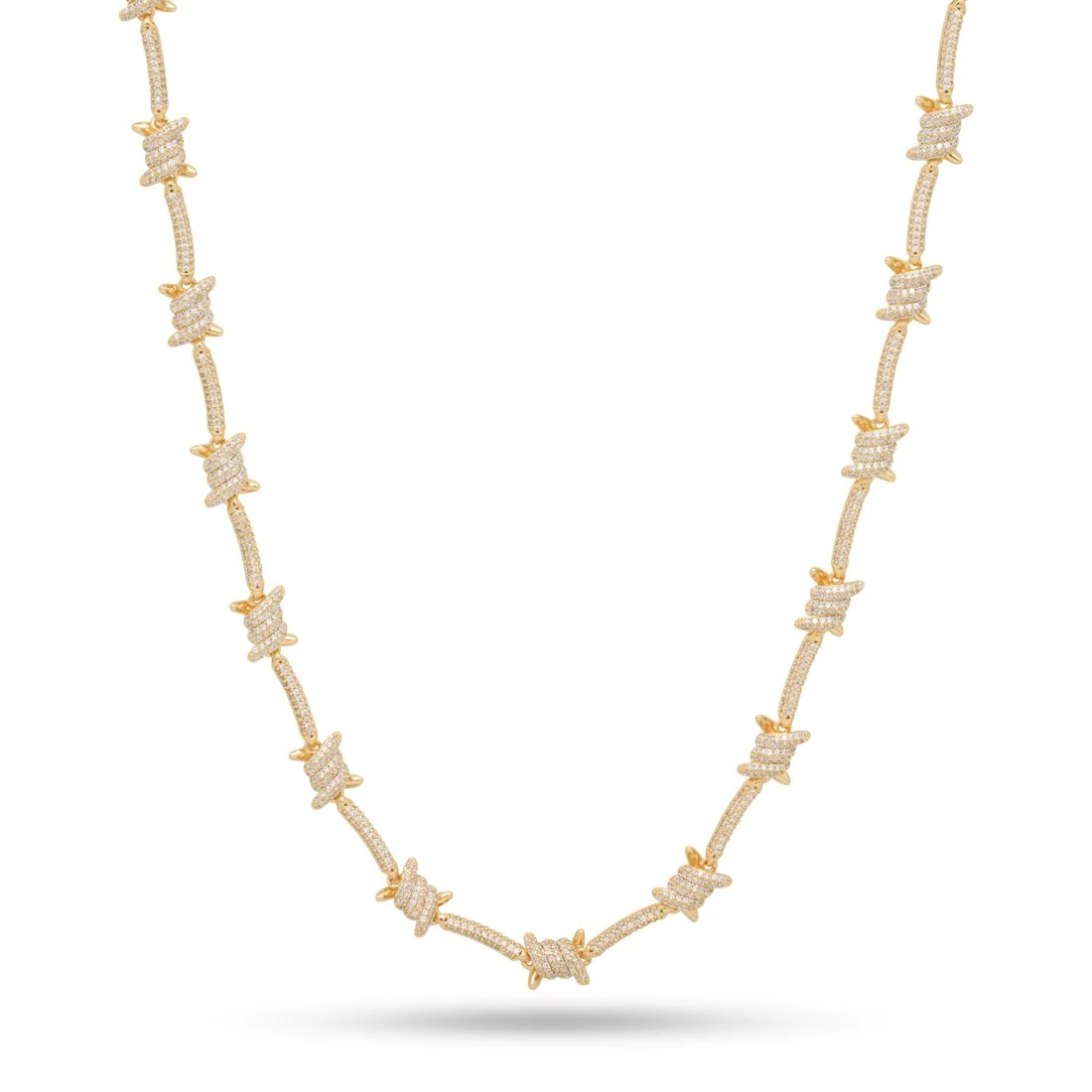 Finely detailed barbs fully wrap the chain, as they do with real wire. Ice lines every side of this piece giving a high level of detail and eye-catching shine. Each chain has a custom Iced Box Clasp with an official King Ice Stamp.