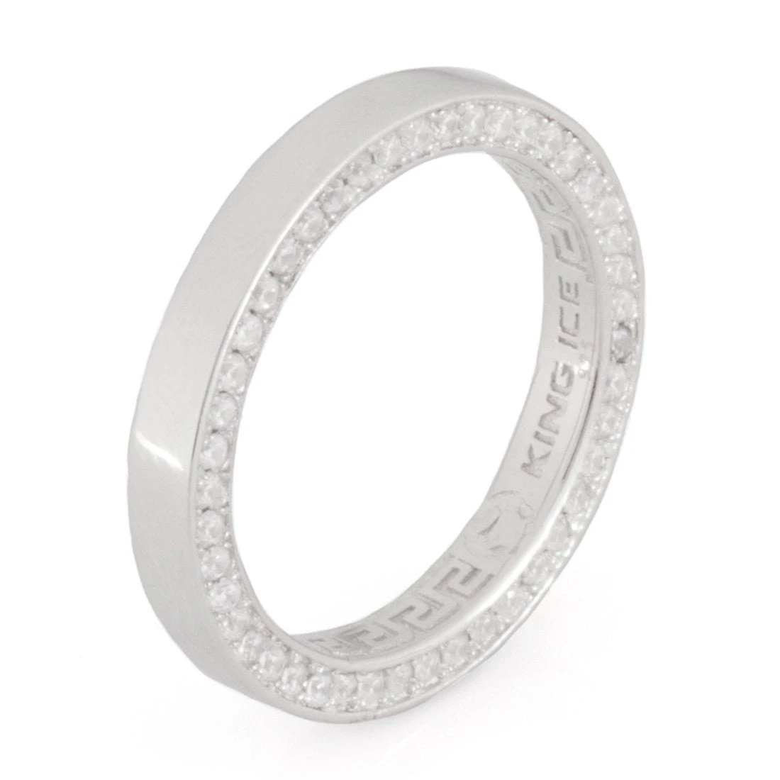 Will you Marry me?! This is the perfect bling to hand your new fiance! This 3mm ring encrusted with VVS Diamond Simulate stones will make any day special! All are made of .925 Sterling Silver and available in 14K gold plating and white gold plating.