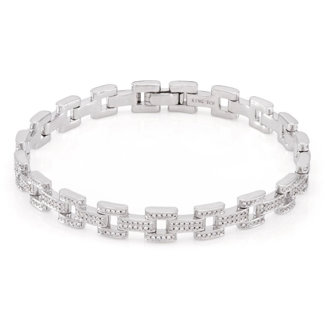 Simple, yet stylish, The Iced Cable Link Bracelet provides a new twist on a contemporary design. Each square link bracelet features handset stones that provide an urban look to this new King Ice design band.
