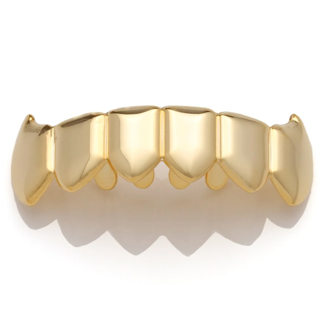 Check out this stunning, Gold Vampire Grillz. Both top and bottom grills are gold-plated for a cool look. This Dracula piece gives you a stylish set of fangs.
