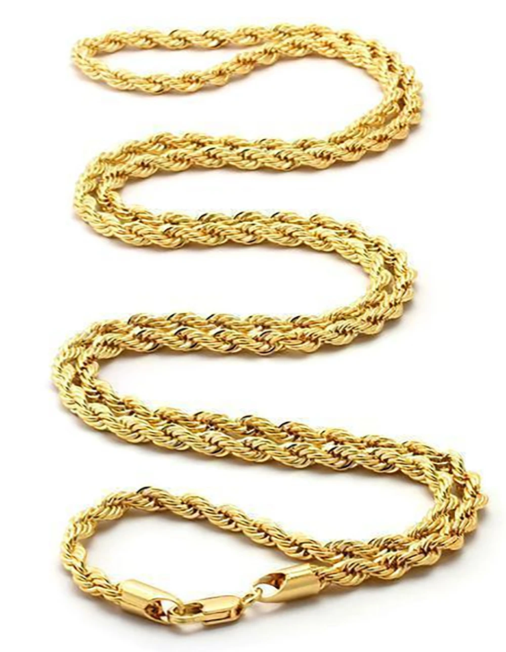 King Ice 4mm Rope Chain. King Ice is bringing back the ’80s with this gold rope chain. Each uses intertwined gold-plated links to provide that thick, old school hip-hop design. The chain is 4mm wide. Length: 22″. Finish: 14K gold plating. Lobser clasp. Material: Stainless steel. Imported. WARNING PROP 65: This product can expose you to chemicals including lead, which is known to the State of California to cause cancer and birth defects or other reproductive harm. For more information go to www.P65Warnings.ca.gov.