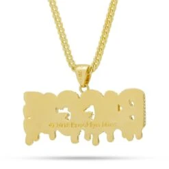 Using the bubble font with some drip, the Dream pendant comes in 14K Gold plating that pairs perfectly with the VVS Diamond Simulates to honor one of the greatest hip hop artists of all time. Each Dream Drip Necklace comes with a 6mm, 22″ Stainless Steel Rope Chain.