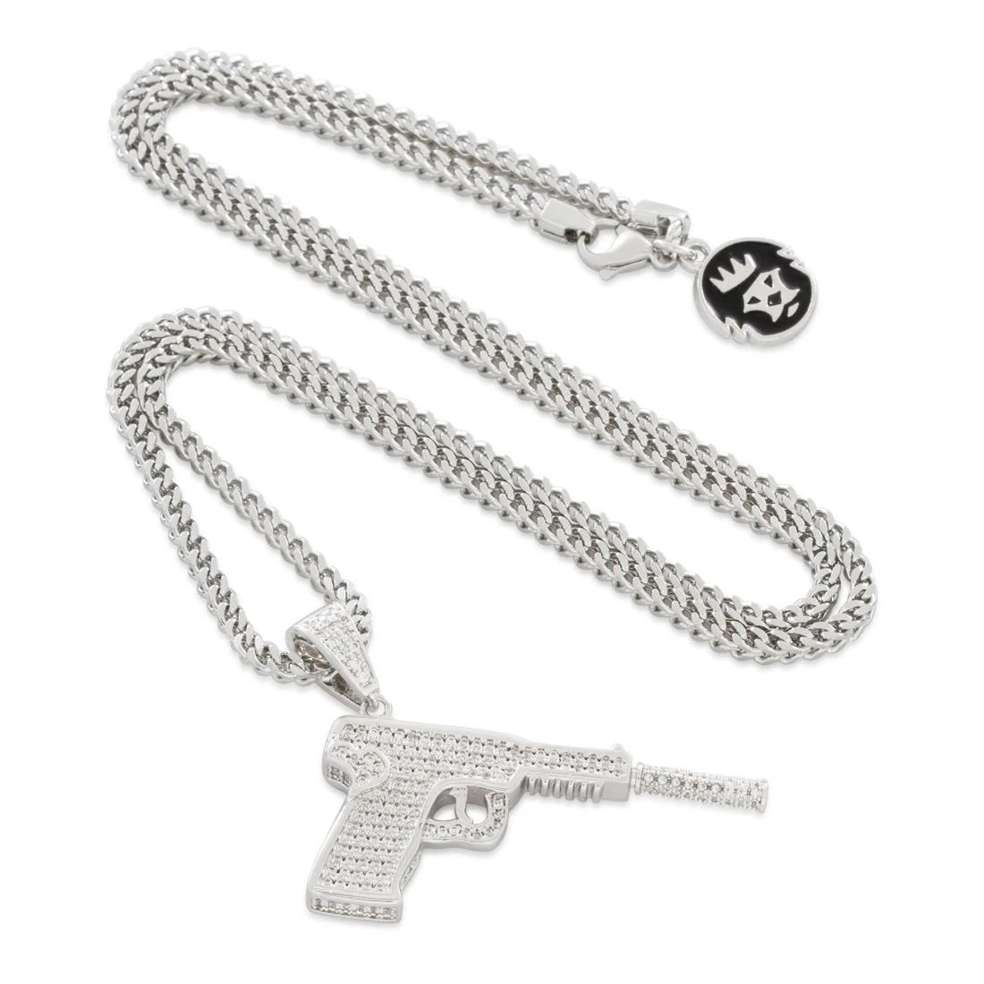 Silent, but deadly, the Silencer is most commonly associated with assassins or secret agents. Because of its ability to suppress loud noise, people can slip in and out without causing commotion. Each Silencer necklace is finished with 14K gold plating and is paired with a 24″, 2.5mm stainless steel Franco chain.