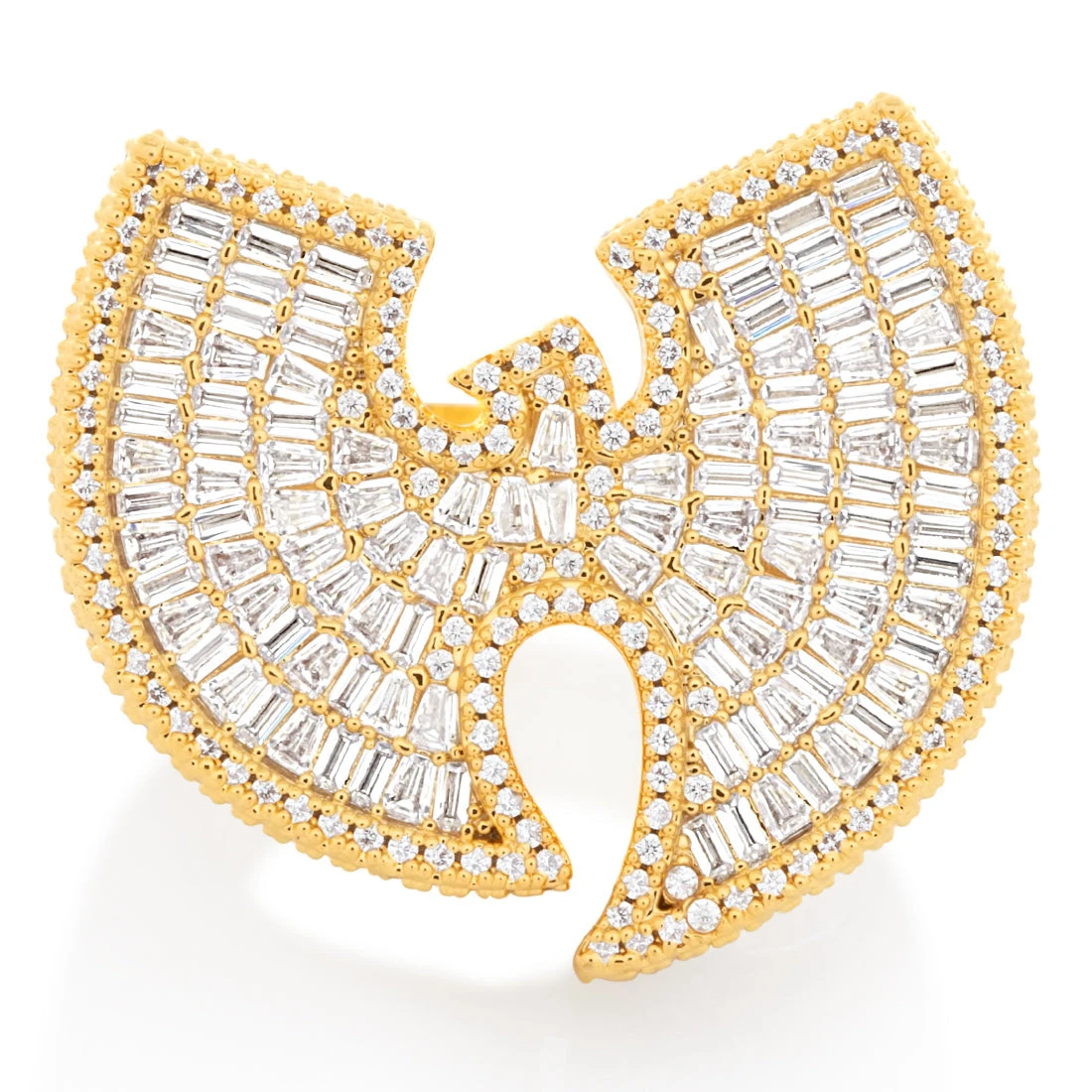 This Wu-Tang x King Ice Ring is made from high-quality materials, perfect for paying homage to the iconic hip-hop legend. Crafted with meticulous attention to detail, this 30mm Wu-Tang Logo Ring stands out with hundreds of hand-set stones and is sure to be an eye-catching addition to any wardrobe.